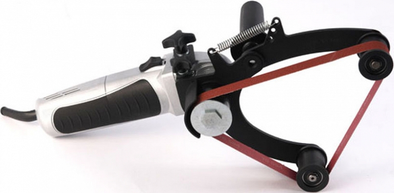 Адаптер на болгарку для шлифовки труб Glob System (Глоб Систем) – приспособление для ушм (угловой шлифовальной машины – шлифмашинки) для шлифовки, полировки и сатинирования круглых и овальных элементов, перил, балюстрад, труб Ø 10 – 100 мм по окружности 360° на 125 мм угловых шлифовальных машинах с регулируемой скоростью.