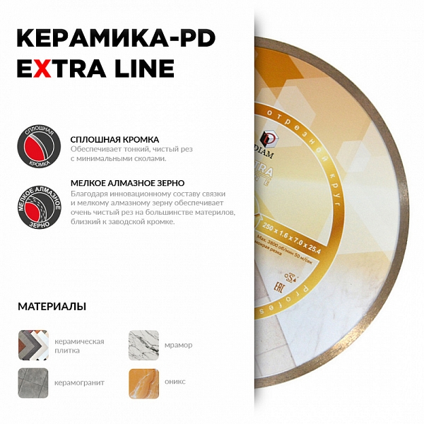 Преимущества алмазного отрезного круга Diam Extra Line 1A1R Корона Керамика-PD 300 мм: