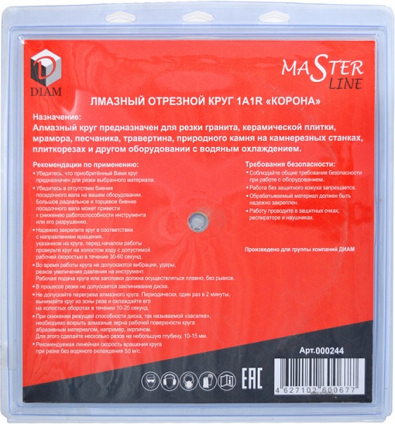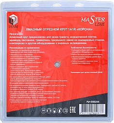 Алмазный отрезной круг Diam Master Line 1A1R Корона Granite 300 мм (Диам Мастер Лайн 1А1Р Корона Гранит 300 мм) – универсальный недорогой алмазный диск высокого качества со сплошной режущей кромкой для резки гранитной, мраморной и керамической плитки бензорезами, электрическими резчиками и плиткорезами, камнерезными станками, стенорезными машинами, швонарезчиками с подачей воды.