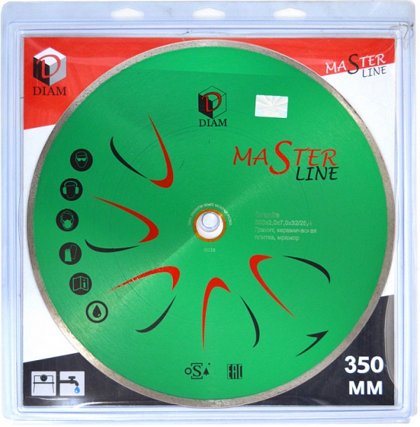 Алмазный отрезной круг Diam Master Line 1A1R Корона Granite 350 мм (Диам Мастер Лайн 1А1Р Корона Гранит 350 мм) – универсальный недорогой алмазный диск высокого качества со сплошной режущей кромкой для резки гранитной, мраморной и керамической плитки бензорезами, электрическими резчиками, камнерезными станками, стенорезными машинами, швонарезчиками с подачей воды.