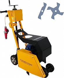 – Легкая и плавная регулировка глубины реза до 100 мм - Защитный кожух для защиты двигателя от падающего на него шлама – специальное ограждение двигателя: при резке мягкой кровли часто случается, что битумная крошка и пыль попадают на корпус двигателя и, расплавляясь, образуют пленку, которая резко уменьшает теплообмен и приводит к перегреву двигателя или становится причиной поломки его частей и выхода двигателя из строя