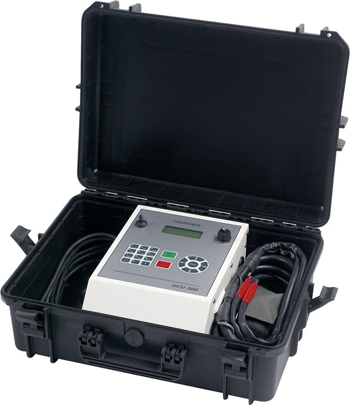 Электромуфтовый сварочный аппарат с протоколированием Hurner HCU 300 (Хернер ХЦУ 300) – аппарат для электромуфтовой сварки полиэтиленовых (пэ, пнд), полипропиленовых (пп), поливинилхлоридных (пвдф) и других полимерных пластиковых труб Ø 16 – 1200 мм электросварными муфтами (электромуфтами) и фитингами (электрофитингами), оборудованными закладными нагревательными элементами.