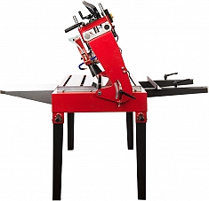 - Обрабатываемый материал лежит неподвижно на рабочем столе, а режущий алмазный круг перемещается сверху по направляющим