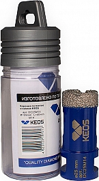 Коронка алмазная по керамограниту Keos Professional Vacuum Brazed M14 25 мм (Кеос Профессионал Вакуум Брейзед М14 25 мм) – корончатое сверло для сверления отверстий Ø 25 мм в керамической плитке, керамограните, граните, мраморе и других видах камня, как на сухую, так и с охлаждающими жидкостями, с использованием сетевых электрических и аккумуляторных УШМ.