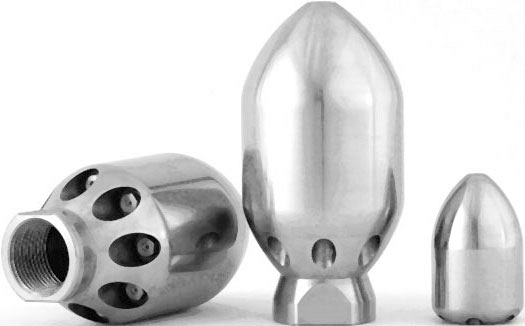 - Изготовлена из особо износостойкой, не поддающейся коррозионному воздействию, закаленной, нержавеющей стали с использованием оптимизированной системы "3D Гидромеханикс": насадки для очистки канализационных сетей были разработаны с использованием оптимизированного "3D Гидромеханизма" – вода, выходящая из шланга высокого давления, плавно поворачивается на 180º, поступает во внутреннюю полость насадки и направляется непосредственно в керамические сопла по пяти осевым каналам (отшлифованных и с высокой точностью обработанных на станке типа CNC), а не трубок или желобов