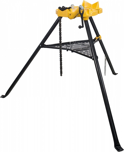 Переносной складной верстак-тренога с цепными тисками Rems Aquila 3B (Ремс Акуила 3Б) – прочная переносная станция обработки труб Ø 10 – 165 мм (1/8" – 6") со встроенными цепными тисками на складной треноге. С практичной полкой. Для мастерских и промышленности. Для стройплощадки и мастерской.