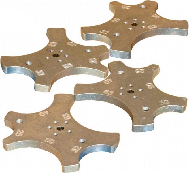 - Диаметр зажимаемой трубы определяется положением 4-х зажимов, каждый из которых поворачивается вокруг оси и фиксируется в одном из 6-ти положений