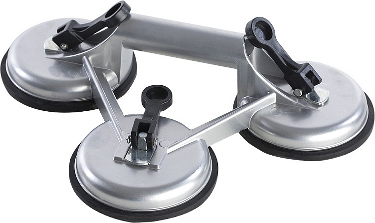 Присоска вакуумная 3-х чашечная Kristal 115 мм (Кристал 115 мм) предназначена для перемещения и ручной транспортировки гладких пластин из натуральных и искусственных каменных материалов. Позволяет надежно и безопасно удерживать и переносить листовое стекло, а также пластик. Цена относительно невелика, поэтому позволяет приобретение небольшими мастерскими и индивидуальными мастерами.