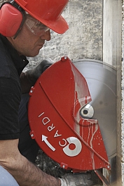 – Мягкий старт предохраняет машину для резки бетона от рывка, а сеть питания – от перегрузки в момент включения электромотора, благодаря чему эту довольно мощную машину можно запитывать от бытовой электросети, однако с обязательным заземлением