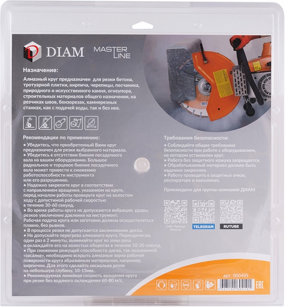 Сегментный алмазный круг Diam Master Line 1A1RSS Универсал 350 мм (Диам Мастер Лайн 1А1РСС Универсал 350 мм) – специальный алмазный отрезной диск с лазерной сваркой сегментов для сухой и мокрой резки бетона, тротуарной плитки, кирпича, черепицы, песчаника, природного и искусственного камня, строительных материалов общего назначения на бензорезах, электрических резчиках, камнерезных станках, стенорезных машинах, швонарезчиках, с подачей и без подачи воды.