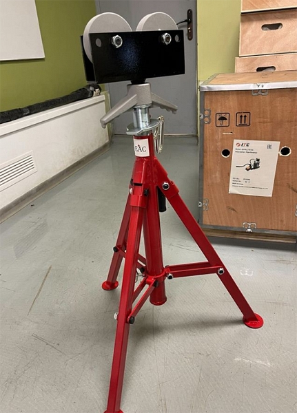 Складная регулируемая роликовая опора для труб Shtall 1109 (Шталл 1109) предназначена для работы с трубами Ø 3 – 300 мм (1/8" – 12"). Применяется с резьбонарезными станками и клуппами для нарезки резьбы на трубах, желобонакаточными станками для накатки желобков на трубах, труборезами для резки труб и другими инструментами.
