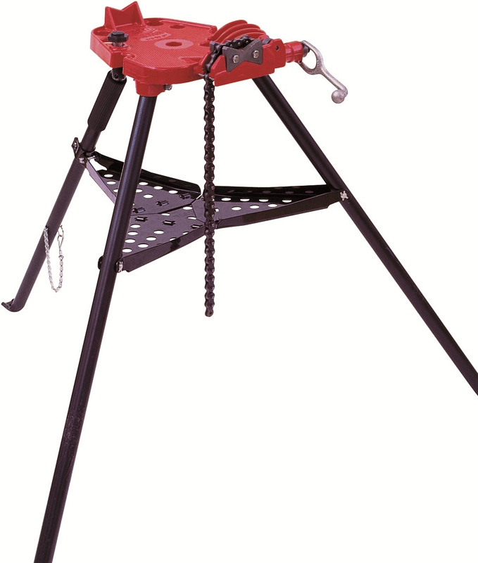Складной верстак тренога с цепными тисками Reed R450P (Рид Р450П) предназначен для пластиковых и металлических труб Ø 10 – 178 мм (1/8" – 6"), а также других заготовок нестандартной формы.