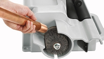 - Прочная щетка для чистки внешнего диаметра быстро очищает трубы с минимальным усилием