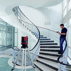 Трехмерная измерительно-проекционная система Leica 3D Disto (Лейка 3Д Дисто) представляет собой надежный лазерный дальномер нового поколения, который значительно упрощает работу. Имеет два режима работы: классический обмер (расчет расстояния между контрольными точками), и режим автоматического сканирования. Когда информация будет собрана ее легко можно совместить в трехмерное изображение. Все данные переносятся в ПК и используются для создания проекта, после чего результат снова можно перенести на планшет для выполнения разметки помещения. Что бы не использовать компьютер в устройстве предусмотрена функция автоматической разметки. Реперные точки вводятся в планшет, и их координаты проецируются на поверхность. Предназначен для строительных фирм профессионально занимающихся отделкой и ремонтом помещений.