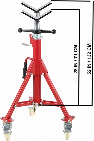 V-образная складная регулируемая трубная опора на колесах Rotorica 1/2-12 (Роторика 1/2-12) предназначена для работы с трубами Ø 20 – 325 мм (1/2" – 12"). Широко используется при сварке тяжелых, фасонных, твердых и круглых труб; для поддержки труб во время накатывания желобков, нарезания резьбы, резки, снятия фаски, вырезания отверстий и т.д.