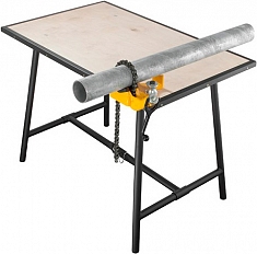 - Прочная, стабильная, литая конструкция опорной плиты со встроенными цепными тисками, опорой для трубы, гибочным устройством.