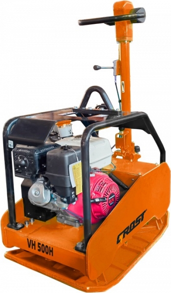 Виброплита бензиновая реверсивная гидравлическая Grost VH 500H (Грост ВХ 500Х) с гидравлическим реверсом – надежная тяжеловесная вибрационная плита с гидравлическим приводом для больших объемов работ. Идеально подходит для уплотнения песка, щебня, смешанного грунта и даже суглинков на большую глубину, необходима при работах в промышленных траншеях, котлованах. Возможно выполнять и задачи по уплотнению дорожек – производительность гораздо выше более легких прямоходных плит, но не подойдет для уплотнения асфальта или тротуарной плитки из-за слишком большой массы.